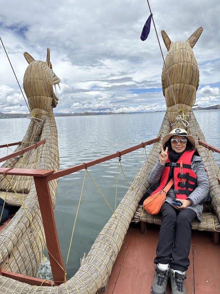 몇 년 전 이집트에 갔을 때 갈대와 비슷한 파피루스가 종이의 원조라는 설명과 상형문자가 새겨진 파피루스를 사온 적이 있었는데.. 호숫가에서 토토로로 배 만드는 과정을 보고, 토토로로 만든 배를 타고 호수를 둘러보았다. 호수에 담긴 하늘은 푸르고 수면위에서 찬란하게 부서지는 윤슬이 얼마나 아름다운지 사진에 담아 보았지만 윤슬의 느낌은 사진에 담기지 않았다. 호수를 돌고 나와 호수 위에 띄워진 식당에서 호수를 바라보며 점심을 먹었다. 이곳이 바다가 아니라 호수라는 사실이 믿기지 않았다.
