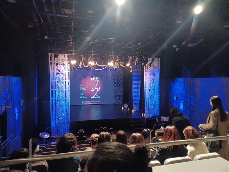 <맥베스- 백가의 난>은 셰익스피어의 <맥베스> 원작을 바탕으로 백제 동성왕 시해 사건, ‘백가의 난’으로 각색해 새로운 서사로 재구성했다. 셰익스피어의 비극 맥베스가 1,500년 전 백제의 역사와 만나 한국적 창극으로 재탄생한 것이다. 피아노, 아쟁, 타악이 함께하는 라이브 연주와 판소리 특유의 울림, 그리고 중고제의 담백하면서도 단단한 소리가 결합해 강렬한 몰입감을 이끈다. 구체적이고 세밀한 감정선을 표현하는 배우들의 열연, 충청도굿의 미학을 차용한 무대장치와 '설위설경設位說經'이 극의 긴장감을 더하며 관객의 눈과 귀를 사로잡는다. 충청도 ‘앉은굿’에서 사용되는 설위설경이 무대 곳곳에 활용되어 인물의 내면세계를 시각적으로 형상화하며, 차령산맥과 공산성, 금강 등 충청의 자연 풍광이 배경으로 펼쳐진다. 대사 곳곳에 충청도 사투리가 자연스럽게 등장하며, 작품 전반에 지역의 정서가 흘러넘친다. 단순히 지명을 배치하는 수준이 아니라 충청의 역사와 미감을 극 전체에 깊숙이 스며들어 있다. 한마디로 이번 창극 속에 충청의 미학이 극대화되어 있다고 할 수 있다.