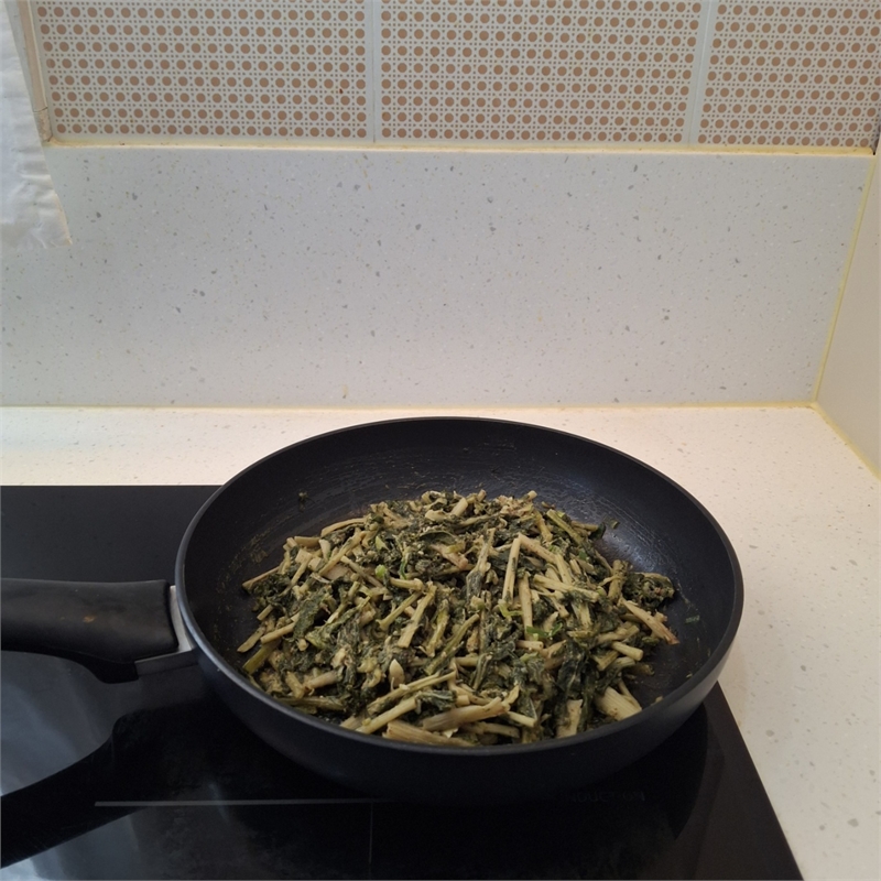 무를 수확하고 무청을 닭들에게 절반 이상 나눠 주었지만 그래도 남은 양이 제법 됐다. 닭들에게 다 줘버릴 수도 있었지만 보관하는 동안 시들고 누렇게 잎이 변해 갈 것이 아까웠다. 너무나 싱싱해서 손질할 것도 없는 무청이기에 활용하고 싶어졌다. 삶아 현관 앞 그늘진 곳에 주르륵 널었다. 호박이나 가지 말릴 때처럼 일일이 뒤집거나, 아침에 내놓고 밤에 거둬들이는 번거로움도 없어 편했다. 서리가 내리는 계절, 큰 일교차와 찬바람에 시래기는 살짝 얼었다 녹기를 거듭하며 잘 말랐다. 열흘쯤 지나 종이처럼 바삭해졌는데, 수분이 완전히 제거된 시래기의 모습은 정말 볼품이 없었다. ‘어디 쓸데가 있겠지’ 생각하고 보관했던 시래기다. 손님들이 올 때마다 꺼내 시래기나물을 만들어 내놓으면 접시에 늘 남는 게 없었다. 저장한 시래기가 줄어들수록 아쉬움은 커진다. 아직 시래기로 나물 밖에 해 먹지 않았는데 말이다. 올해 무 수확을 하면서 필요한 사람들과 나눔을 했는데 내년에도 나눔 하게 된다면 ‘무청은 두고 가세요’라는 팻말이라도 세워야겠다. 올해 나의 건강검진 결과통보서에는 골다공증 의심으로 ‘골절 위험이 꽤 높을 수 있으니 각별한 관리 대상자’라고 쓰여있다. 뼈 건강에 좋은 시래기나물이니 더더욱 아쉬울 수밖에 없다.