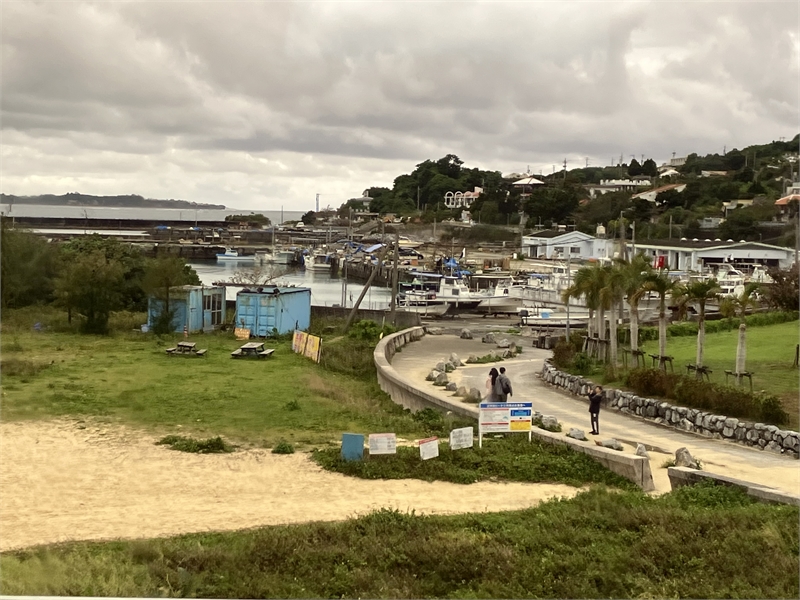 우미카지테라스(ウミカジテラス)를 돌아본 소감도 남달랐다. 기실 바닷가에 계단형으로 조성한 상가치고는 아이디어가 돋보였는데, 거창하게 오키나와의 산토리니라고 부를 정도는 아니더라도 하얗게 페인트칠한 시멘트 구조물에 아기자기한 가게들과 다양한 카페 등을 갖추고 탁 트인 해변에 야자수들을 심어 코발트 물빛 바다와 어우러진 지중해 분위기를 연출한 정성이 가상했다. 압권은 나하공항과 인접한 장점을 살려 비행기들의 이착륙 장면을 손에 잡힐 듯 실시간 카메라에 담을 수 있다는 점이었다. 다들 인증사진을 남기기 바쁜 모습이었는데 안타깝게도 궂은비가 오락가락하는 바람에 여의치가 않아, 우리 부부는 애써 발품을 팔며 잘 차린 상업 시설들을 흥미롭게 훑어봤다. 다소 차가운 날씨여서 굳이 아이스크림을 입에 대지는 않았고 돌아보면 볼수록 나름 묘미도 있어 눈요기하듯 반 시간을 보내기에 지루하지는 않았다.