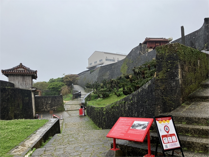 궂은비에 젖은 옛 류쿠왕국의 견고한 슈리성 모습